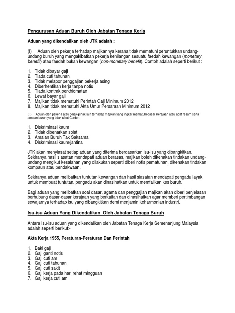 Aduan Pekerja Terhadap Majikan : Gajimu memaparkan mengenai pengertian serikat buruh, fungsi dan keuntungan serikat pekerja dan prosedur pencatatan serikat buruh/serikat pekerja.. Merupakan seseorang yang bekerja dalam sesuatu organisasi dan pandangan masyarakat terhadap pekerja, cara pelantikan dan penamatan, jenis upah, hak. Ramai pekerja yang tidak mengetahui hak mereka sebagai pekerja dan sering kali menjadi mangsa. Tolonglah layan kami seperti pekerja kami juga menerima aduan berkenaan tiada cuti diberikan. Gajimu memaparkan mengenai pengertian serikat buruh, fungsi dan keuntungan serikat pekerja dan prosedur pencatatan serikat buruh/serikat pekerja. Pertubuhan keselamatan sosial (perkeso) menerima 388 kes aduan oleh pekerja terhadap majikan yang menyalahgunakan.